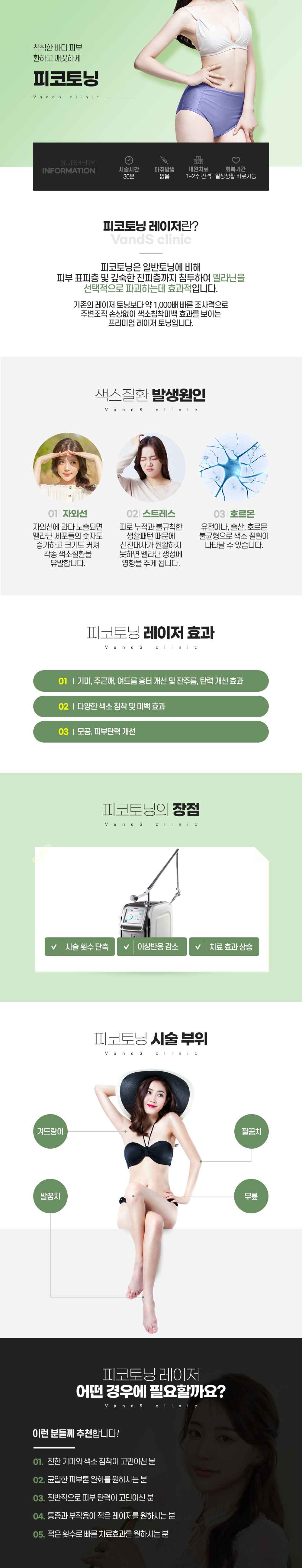 피코토닝은 755nm 파장을 사용하여 1064nm을 사용하는 일반토닝에 비해 피부 표피층 및 깊숙한 진피층까지 침투하여 멜라닌을 선택적으로 파괴하는데 효과적입니다.